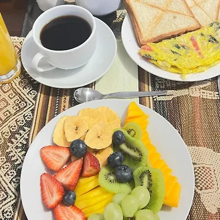 El desayuno americano se sirve cada mañana en el Valicha Casa. En las inmediaciones puedes comer en el restaurante uma cafe cusco, a 1 km.